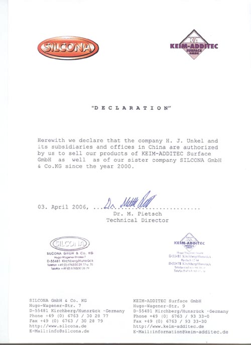 Keim-Additec與翁開爾公司是全方位的合作伙伴,雙方從1996年開始合作,翁開爾作為其中國及東南亞總代理,全權(quán)負(fù)責(zé)該區(qū)域產(chǎn)品銷售及市場(chǎng)推廣。