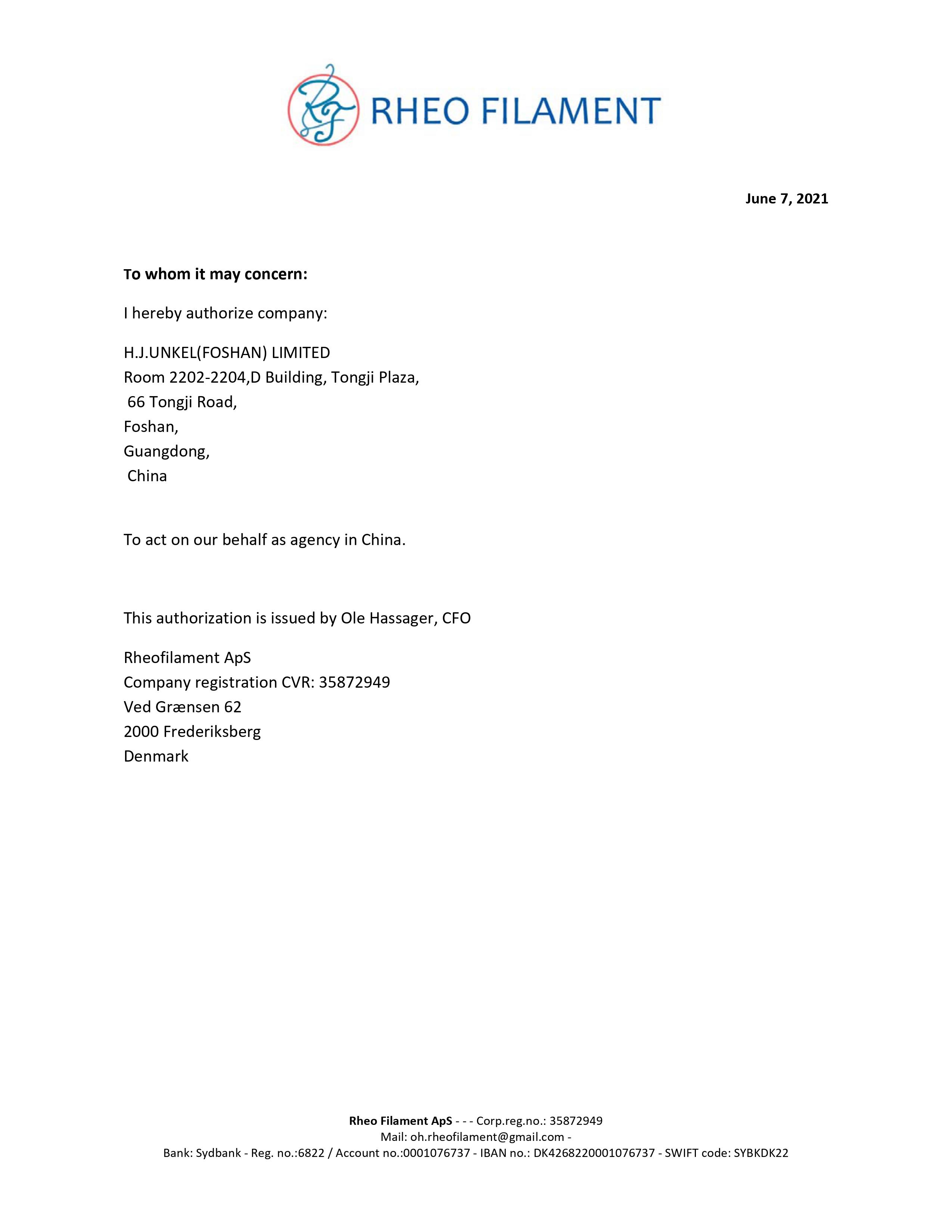 翁開爾是丹麥RHEO FILAMENT ApS公司在中國的代理商,負責中國的銷售和技術咨詢。