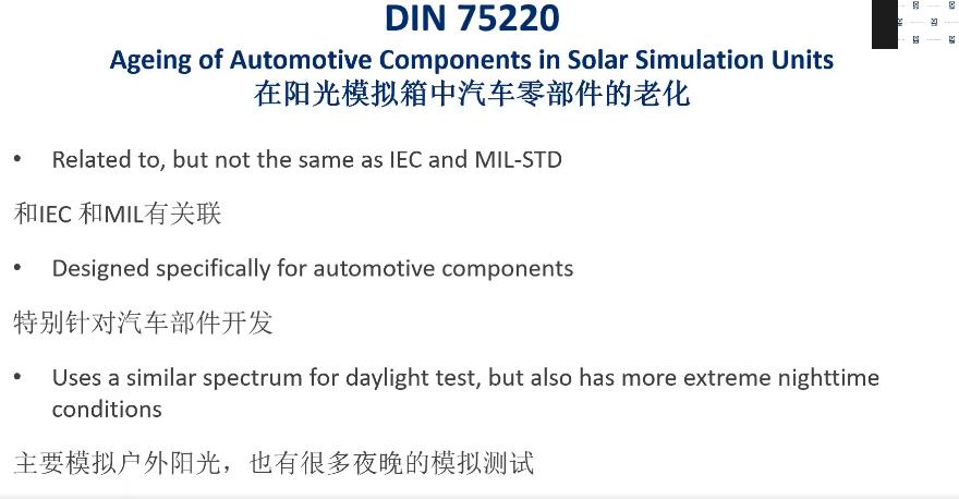 本次研討會(huì)將詳細(xì)解讀為您詳細(xì)的介紹國(guó)際電工委員會(huì)IEC 采用的測(cè)試電子產(chǎn)品的常見方法,特別是IEC60068-2-5太陽輻射測(cè)試和光老化測(cè)試標(biāo)準(zhǔn)。