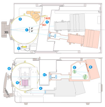 SCI(包含鏡面反射光)/SCE(不包含鏡面反射光)機械切換測量(ISO7724/1、DIN5033 Teil7、JIS Z8722 條件C)