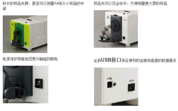 透射測量口徑:約Φ20mmUV調(diào)整 馬達(dá)控制濾鏡位置,連續(xù)變化 端口 USB 1.1 電源 AC 100V/120V/230V 50/60Hz(使用標(biāo)配的電源適配器) 操作溫濕度范圍 13°C~33°C,相對濕度80%以下(35°C),無凝露 儲存溫濕度范圍 0°C~40°C,相對濕度80%以下(35°C),無凝露 尺寸(長×寬×高) 271 ×274× 500 mm 重量 18Kg 標(biāo)準(zhǔn)配件 白色校正板CM-A154,零位校正盒CM-A155,3×5mm目標(biāo)罩CM-A91,Φ8mm目標(biāo)罩CM-A92,Φ25.4mm目標(biāo)罩CM-A93,USB線1F-A21,電源適配器AC-A308,配件盒CM-A156,防塵罩CM-A69 可選配件 透射樣品夾CM-A96,透射零位校正板CM-A100,