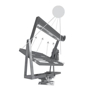自然太陽光跟蹤聚能曝曬裝置自20世紀(jì) 60年代被用于自然戶外加速老化試驗(yàn)。Q-Trac自然太陽光跟蹤聚能曝曬裝置是一種先進(jìn)的雙軸裝置。它從早到晚持續(xù)跟蹤太陽且自動(dòng)補(bǔ)償太陽仰角因季節(jié)變化引起的影響。反射鏡陣列把陽光高度聚集到測(cè)試樣品上。一年內(nèi),Q-Trac樣品接收到的紫外線的總量是在佛羅里達(dá)的5倍。這使得對(duì)產(chǎn)品的測(cè)量周期大大縮短。