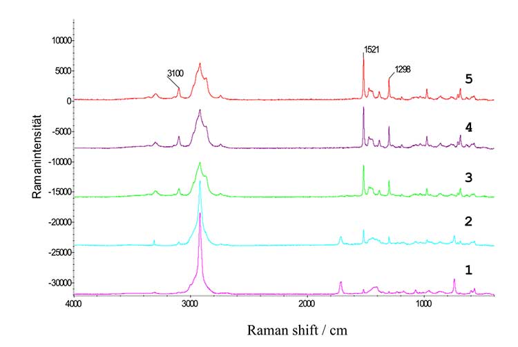 (圖3:離析物和產(chǎn)物的混合物的拉曼光譜)