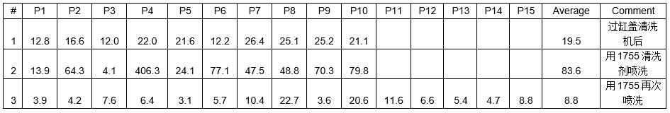 測試目的:1755清洗劑的有效性以及不同噴洗過程的清潔度差異。